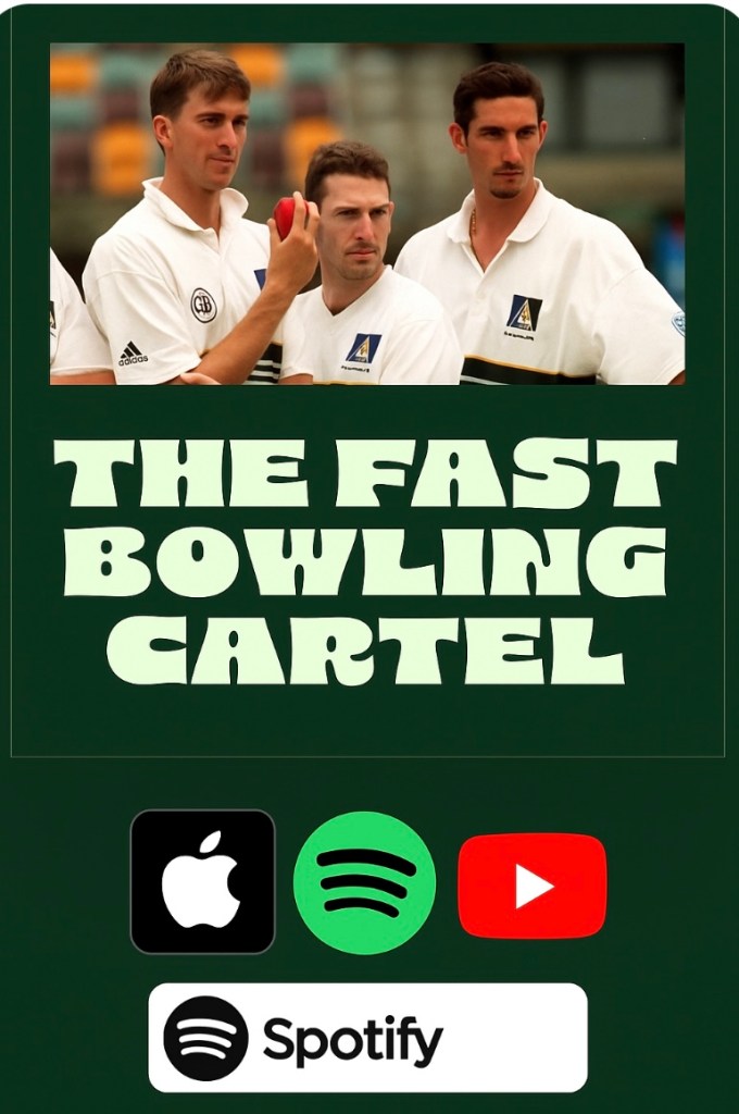 Description– Welcome to The Fast Bowling Cartel – where the quicks talk fast, bowl faster and nothing’s off-limits. Hosted by Aussie pace royalty Glenn McGrath, Damien Fleming, and Jason Gillespie, this is your front-row seat to the raw, unfiltered world of fast bowling. No PR spin. No sugar-coating. Just three legends telling it like it is – breaking down the craft, reliving wild tour tales, and pulling back the curtain on life behind the baggy green.